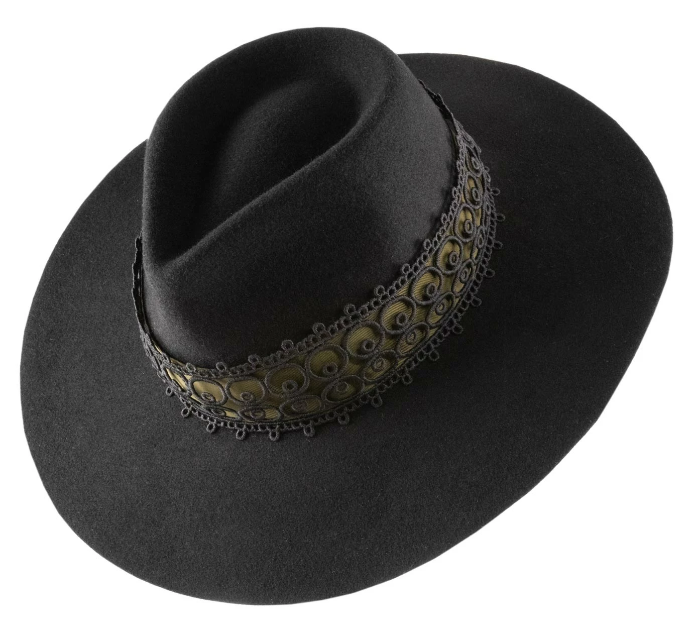 Flattened brim, Shellac varnish (Fixative agent that rigidifies and waterproofs the felt)
